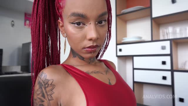 Lara Rouge, sexy Brazilian ebony cutie loves 2 dicks in her ass (Anal, DAP, 0% pussy, foot fetish, ATM, gapes, goth, alt model, 2on1 )